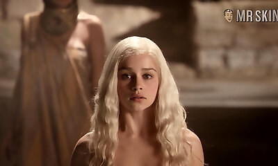 Taking a molten bath blonde babe Emilia Clarke exposes her lovely juicy booty
