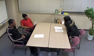 Japanese floozy in a hot threesome action with 2 black dudes
