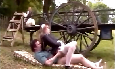 Cute maid is great at sucking a lucky fellow's xxl boner