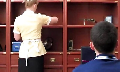 Busty step-mother dressed as maid has a threesome with her sonnie and his friend