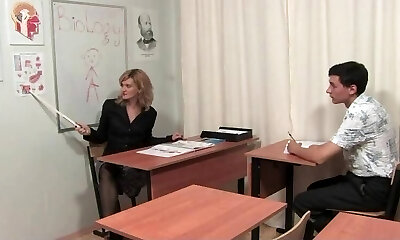 Blonde Teacher dons a paper bag, so that a guy can fantasize getting blown off by his girlfriend