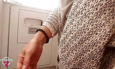 nippleringlover horny milf pissing on public toilet in airplane flashing pierced cooter and extreme pierced nipples