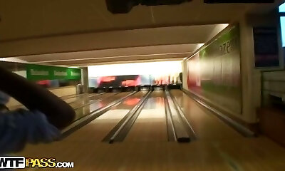 Big tits amateur steps into the toilet for a doggy style boning through a glory hole