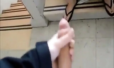 Shameless whore is sucking me off on the stairs and she's so merciless