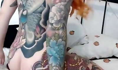 gorgeous tatted redhead proudly shows pierced tits