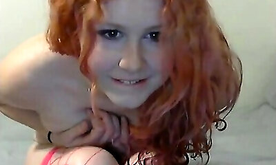 Horny redhead mature lady is showing off her gigantic all natural cupcakes in striptease video